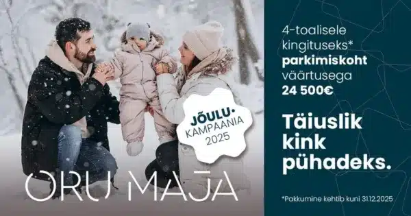 Pühadeperiood Oru Majas on eriline: 4-toalise ostu või broneerimise puhul saad parkimiskoha väärtusega 24 500€ kingitusena kaasa.
